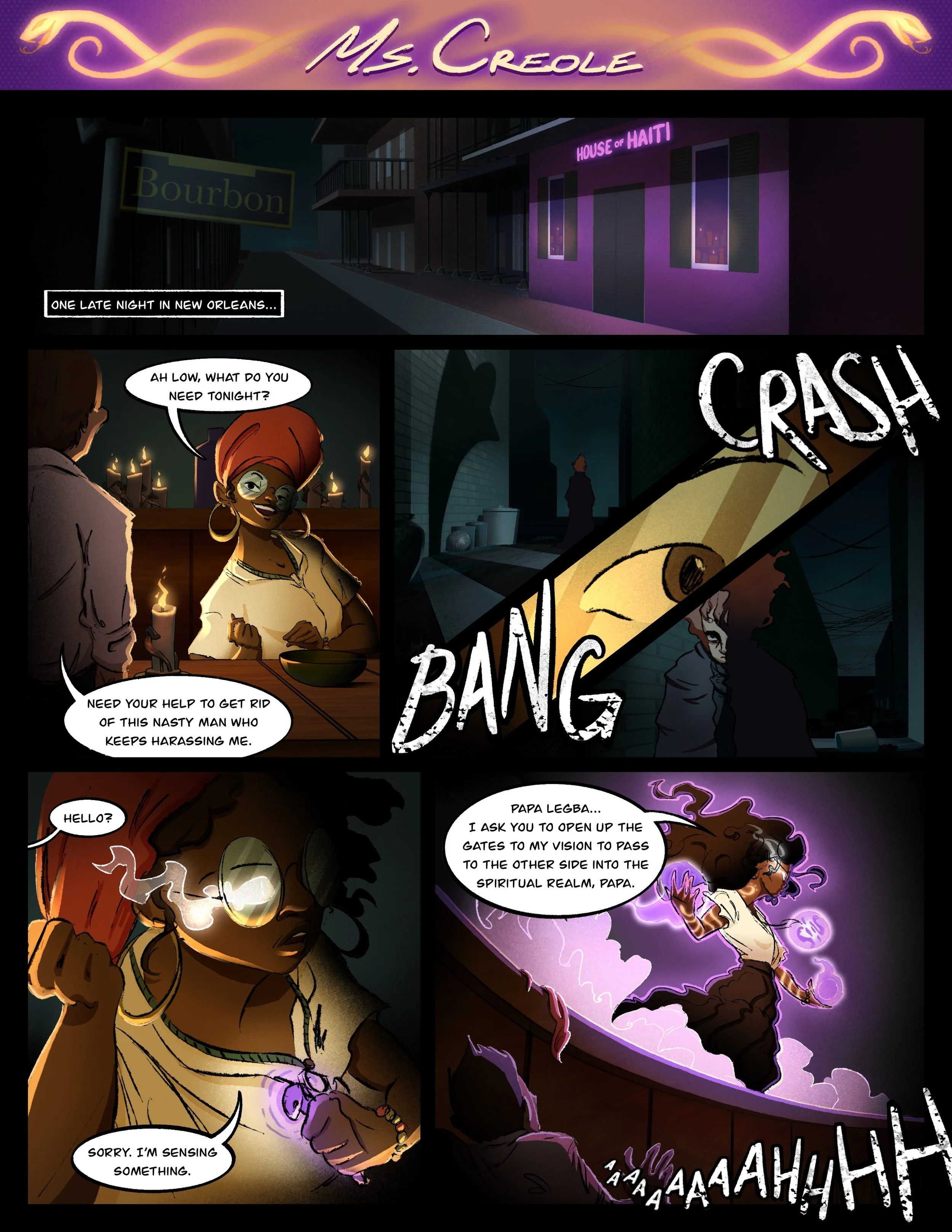 (Line work by Aaron Persh, Color by Mia SFM and 3D Environment/Assets by Devante’ Williams and Markeen Scott)